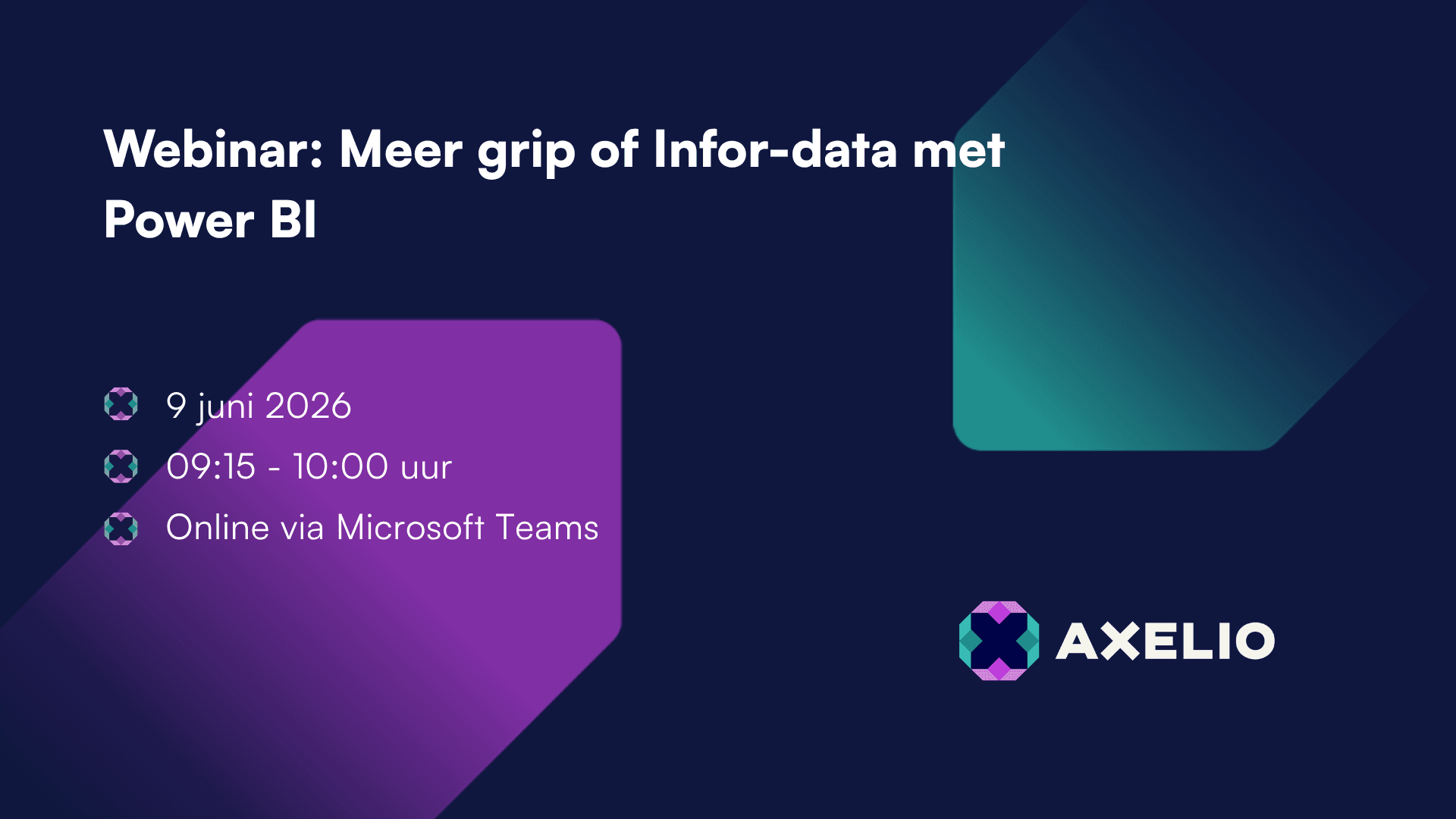 Dit webinar is interessant voor iedereen die werkt met financiële data, bedrijfsprocessen of operationele sturing. Denk aan finance managers en controllers die beter inzicht willen in prestaties, operations- en supplychainmanagers die hun processen willen optimaliseren, en BI- en IT‑professionals die dagelijks bezig zijn met data, rapportages en systemen. Ook voor gebruikers van Infor LN en M3 die meer grip willen krijgen op hun data en sneller onderbouwde beslissingen willen nemen, biedt dit webinar waardevolle inzichten.